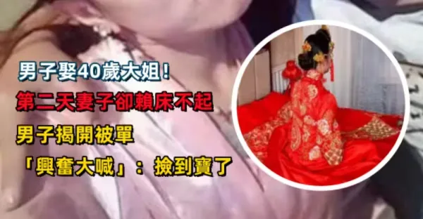 男子娶40歲大姐!第二天妻子卻賴床不起 男子揭開被單「興奮大喊」:撿到寶了