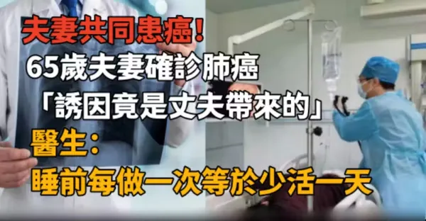 夫妻共同患癌!65歲夫妻確診肺癌「誘因竟是丈夫帶來的」 醫生/睡前每做一次等於少活一天❗