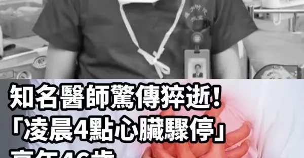 知名醫師驚傳猝逝!「凌晨4點心臟驟停」享年46歲,知情人曝「生前作息」:讓人心疼