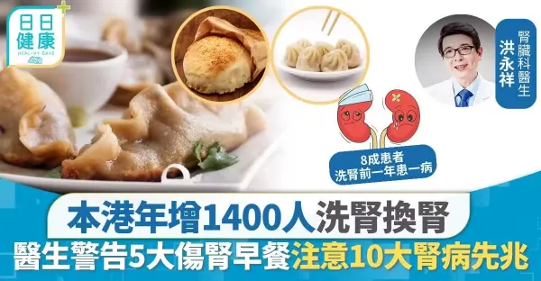 本港年增1400人洗腎換腎 醫生警告小心5大傷腎早餐,注意10大腎病先兆
