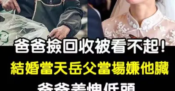爸爸撿破爛被看不起!!結婚當天「岳父當場嫌他髒」爸爸羞愧低頭「下秒飯店老闆出來」岳父嚇到跪下道歉