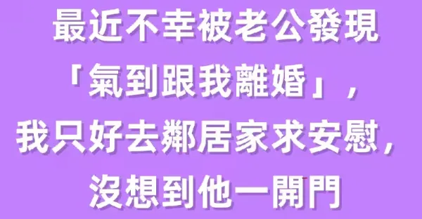 我出軌樓上男鄰居6年,最近不幸被老公發現「氣到跟我離婚」,我只好去鄰居家求安慰,沒想到「他一開門我當場崩潰了」...