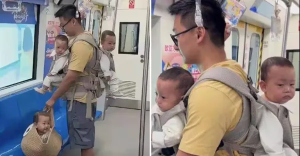 捷運遇「超人奶爸」!一人帶三娃「全程不哭不鬧」,他分享1神招,網笑:受教了...