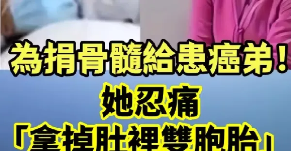 為捐骨髓給患癌弟!她忍痛「拿掉肚裡雙胞胎」 最後結果「卻讓她懊悔終生!」