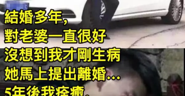 結婚多年,對老婆一直很好,沒想到我才剛生病,她馬上提出失婚…5年後我痊癒,又做生意賺錢「故意開跑車去前妻家」,無意聽見「鄰居阿嬤的話」痛哭後悔!