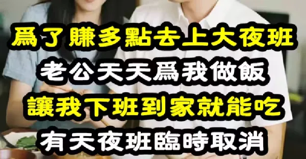 為了賺多點上大夜班「老公天天為我做飯」讓我下班到家就能吃 有天夜班臨時取消...我提早回家「開門後餐桌上一幕..」讓我結束了六年婚姻
