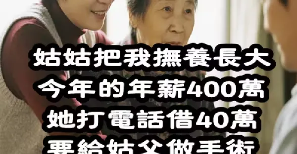 姑姑把我撫養長大!今年薪400萬「她打電話借40萬」給姑父做手術 我拒絕了被老婆質問「我告訴老婆真相」聽完後她沉默了...