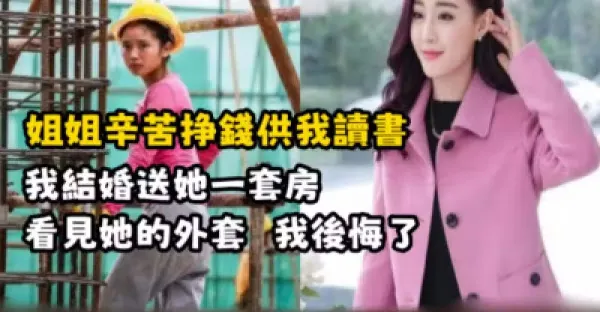 姐姐辛苦掙錢供我讀書,我結婚送她一套房,看見她的外套我後悔了...
