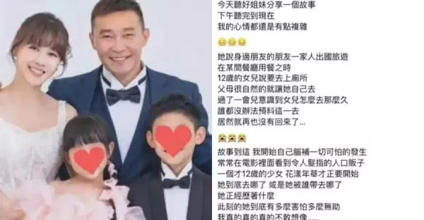 全家出國旅遊「12歲女兒去廁所再也沒回來」 嚴立婷痛心:不要讓孩子離開視線!