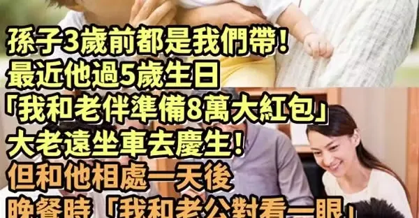 孫子3歲前都是我們帶!最近他過5歲生日「我和老伴準備8萬大紅包」大老遠坐車去慶生!但和他相處一天後,晚餐時「我和老公對看了一眼」決定把錢原封不動帶回來😔