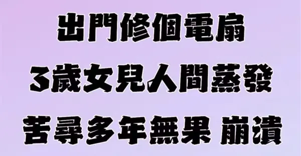 出門修電扇「3歲女兒人間蒸發」警察爸「苦尋23年無果」崩潰,竟發現「孩子被藏在這」