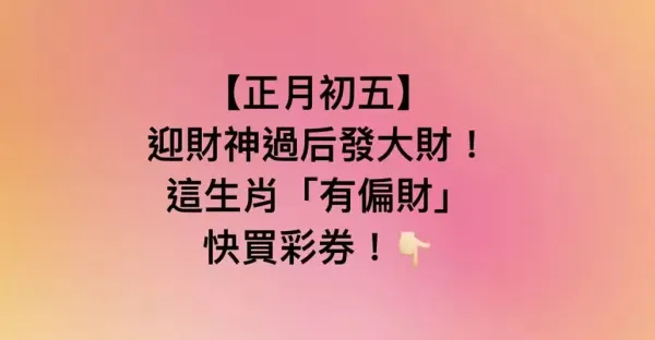 【正月初五】迎財神發大財!這生肖「有偏財」快買彩券!