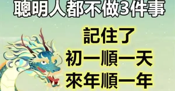 大年初一聰明人都不做3件事,初一順一天,來年順一年,記住了.