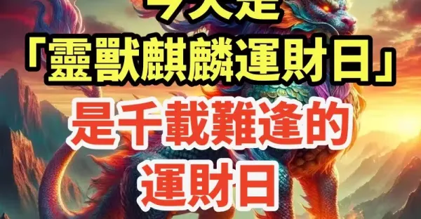 今天是「靈獸麒麟運財日」!是千載難逢的運財日~快點來接福