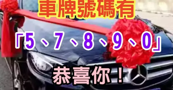 家裡車牌號碼有5、7、8、9、0 注意啦,恭喜你:好運連連,聚錢財