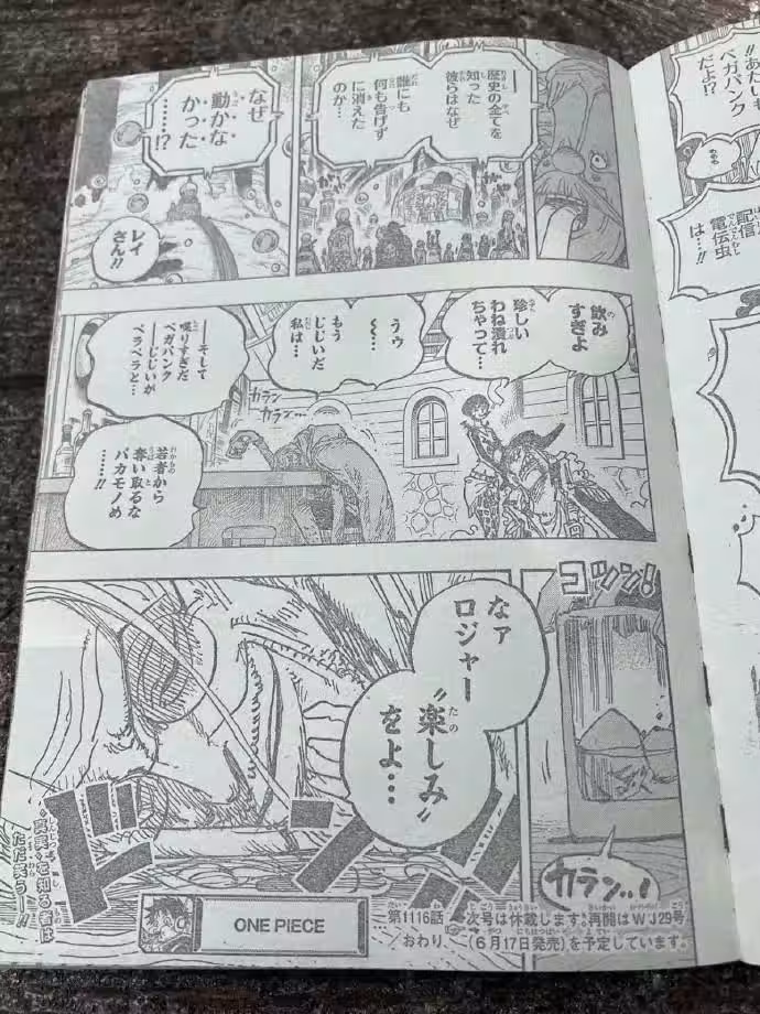 雷利沒理夏琪,在那自言自語,說他已經是老頭了,還說貝加龐克說得太多,都老頭子了,嘴還不消停,不要奪走年輕人的樂趣。這一波屬於官方吐槽,連雷利都覺得,再讓老貝往下說,年輕人就沒得探索了,世界的真相需要年輕一代自己找出來,這也是雷利一貫的主張。