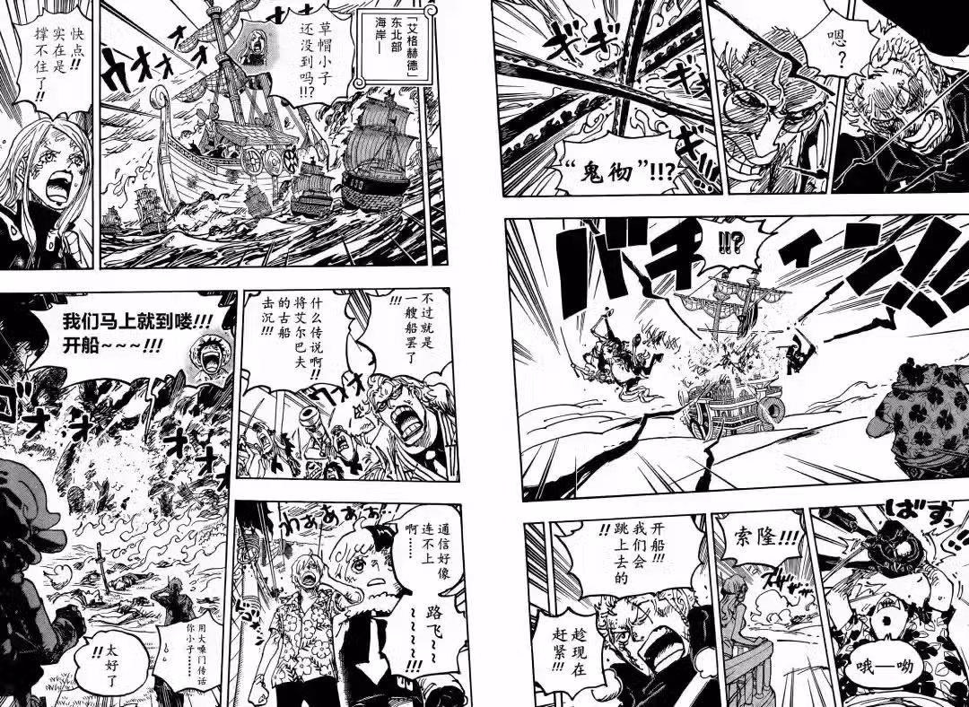 海賊王1117話高清漢化已經更新,這集的內容還是很精彩的,劇情還在未來島篇章,草帽一夥很快就要逃出去了。巨人族戰士跟海軍中將交戰,他們準備出發離開未來島,海軍軍艦正在炮擊巨人族的船隻,東利和布洛基,路飛三人真正撤離,古代機器人被五老星群毆,索隆也跟金星交戰了。