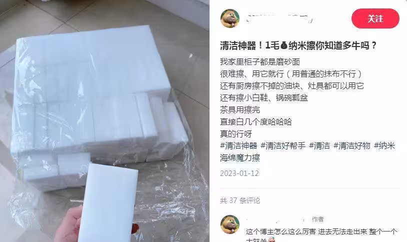 因此,建議大家不要再買這種劣質海綿擦了,要用的話就選符合國家標準的海綿擦,不然,用絲瓜瓤也比這個好。