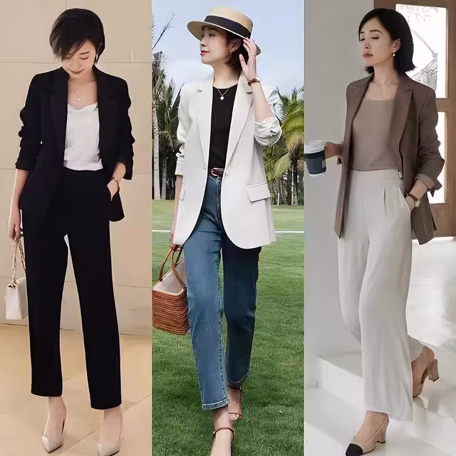 對於中年女人來說,不妨可以換成經典基礎色的長褲,例如黑色、白色、灰色、藏青色、米色等,都是中年女人的首選色,好看百搭不出錯。