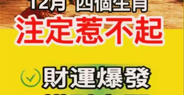 「 明天 12月4號 」 這三個幸運生肖 橫財最旺